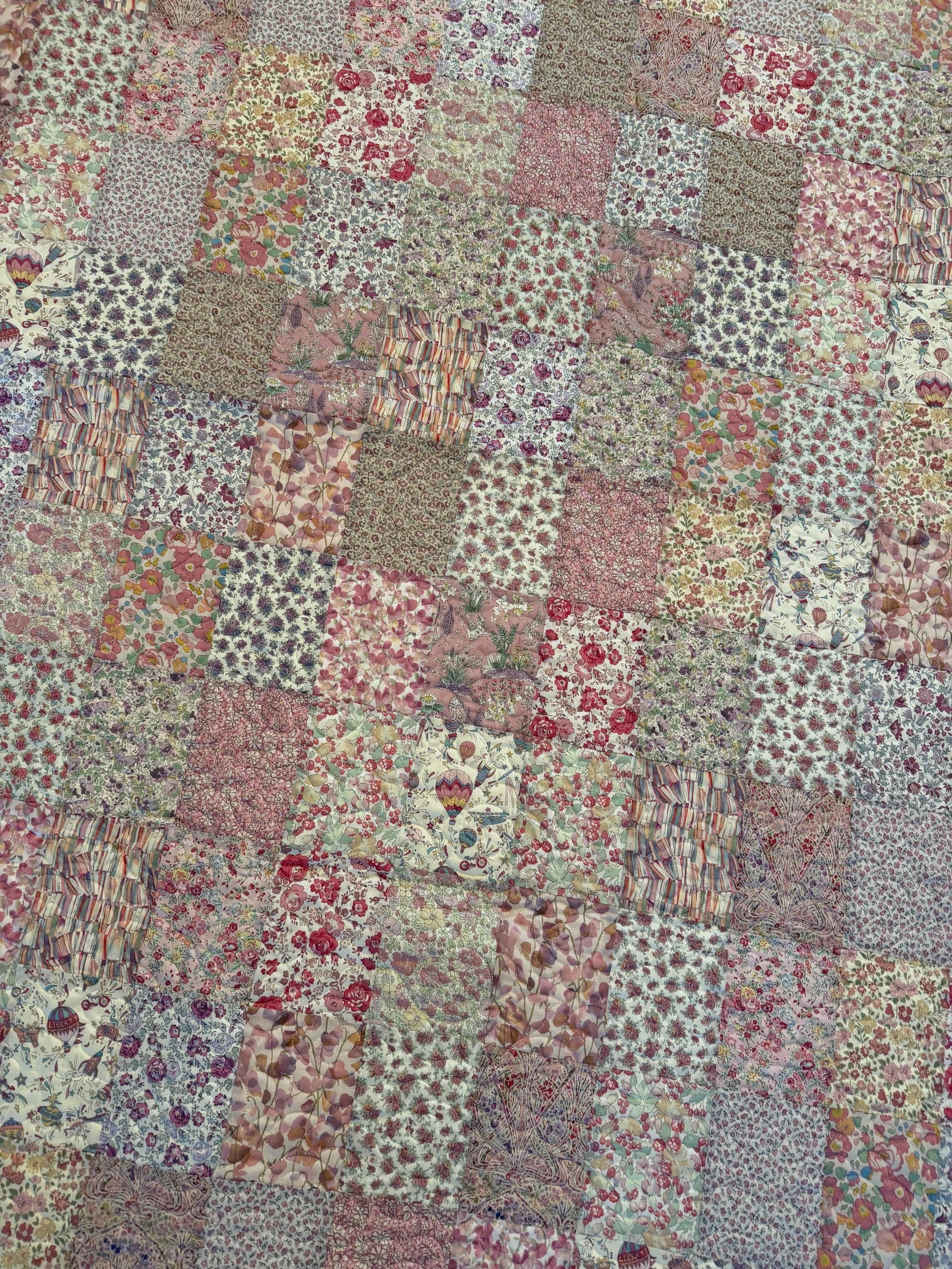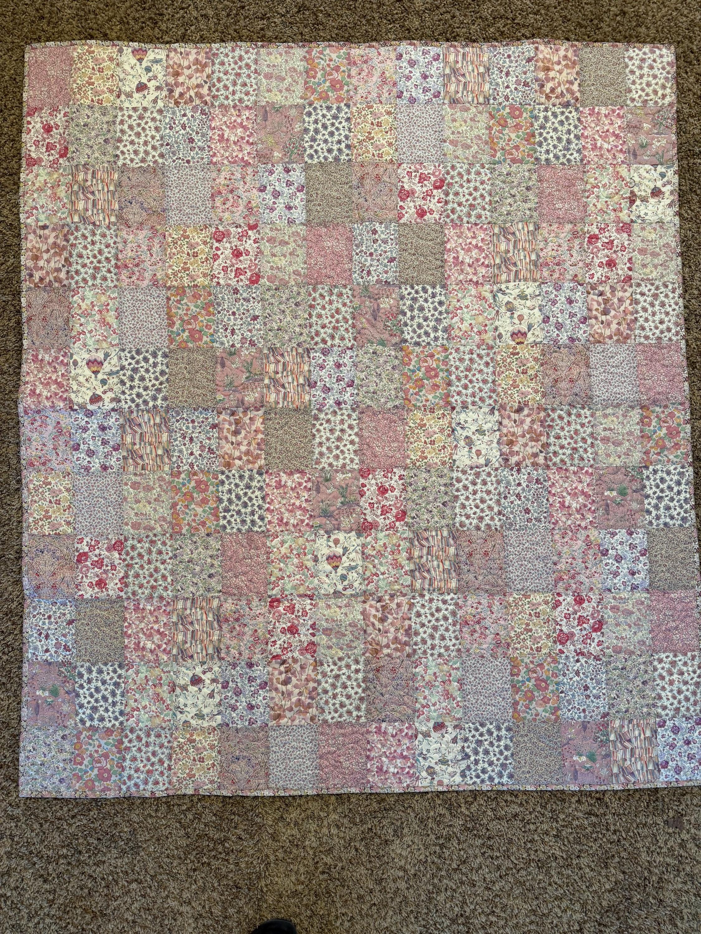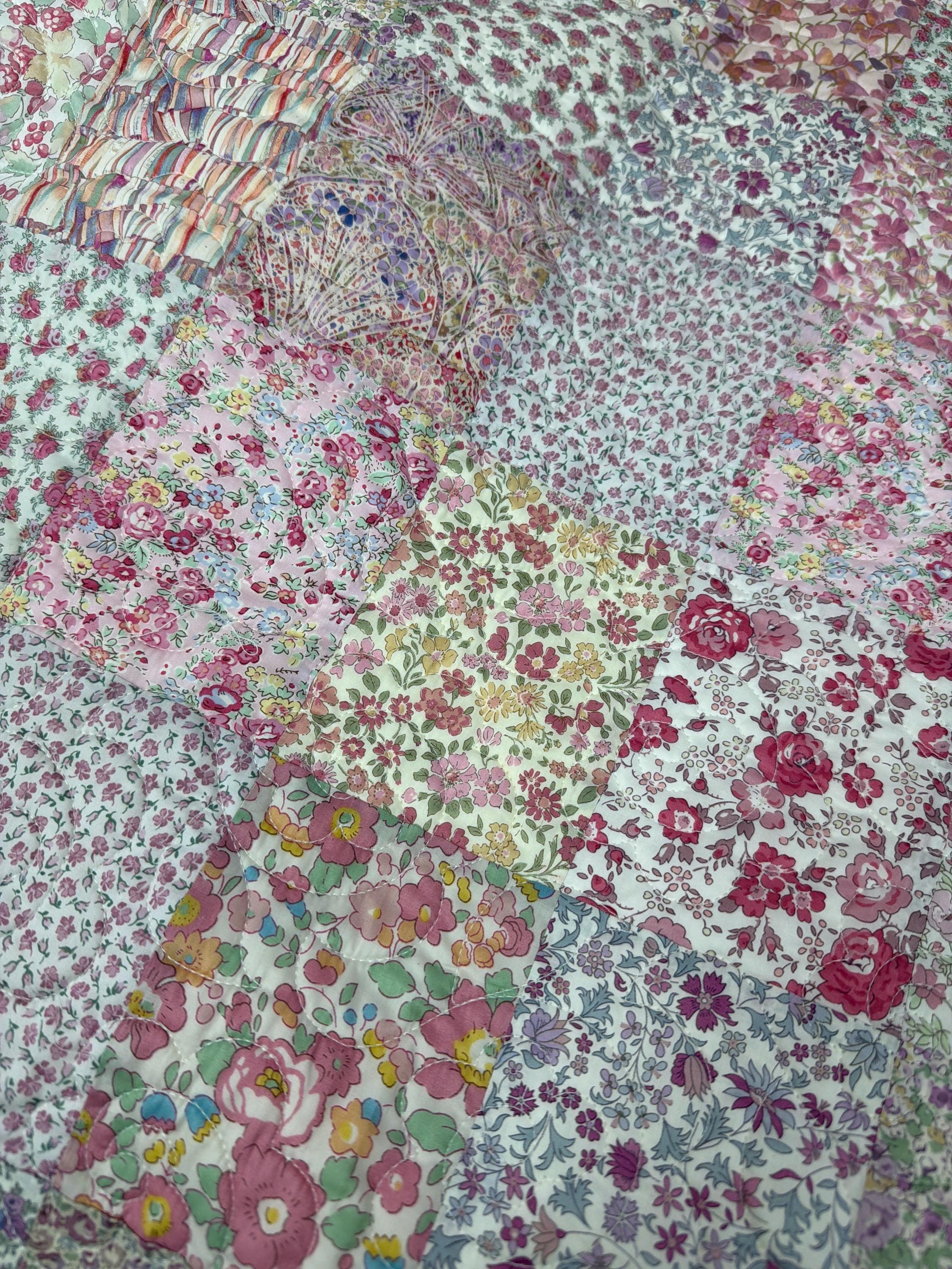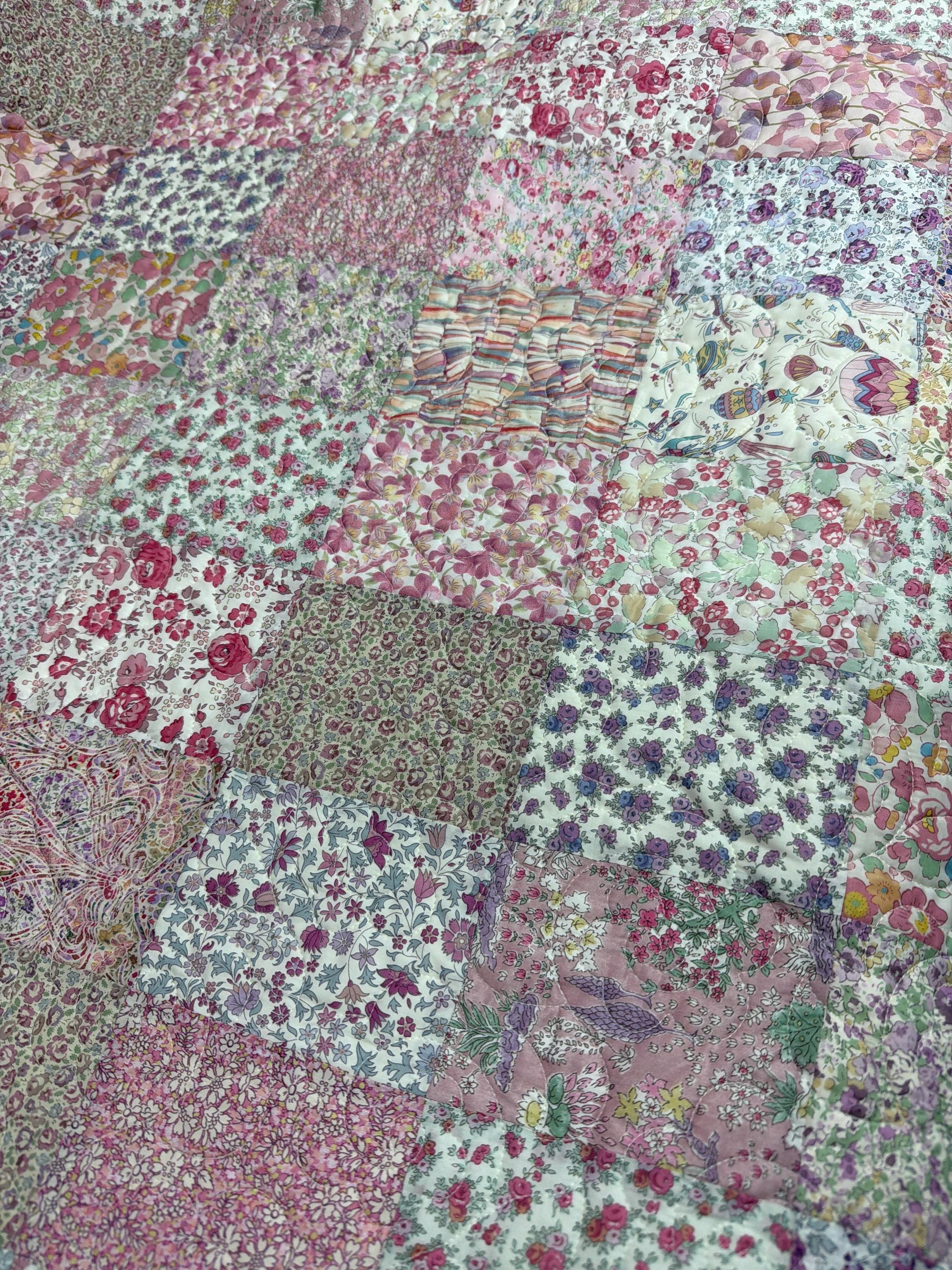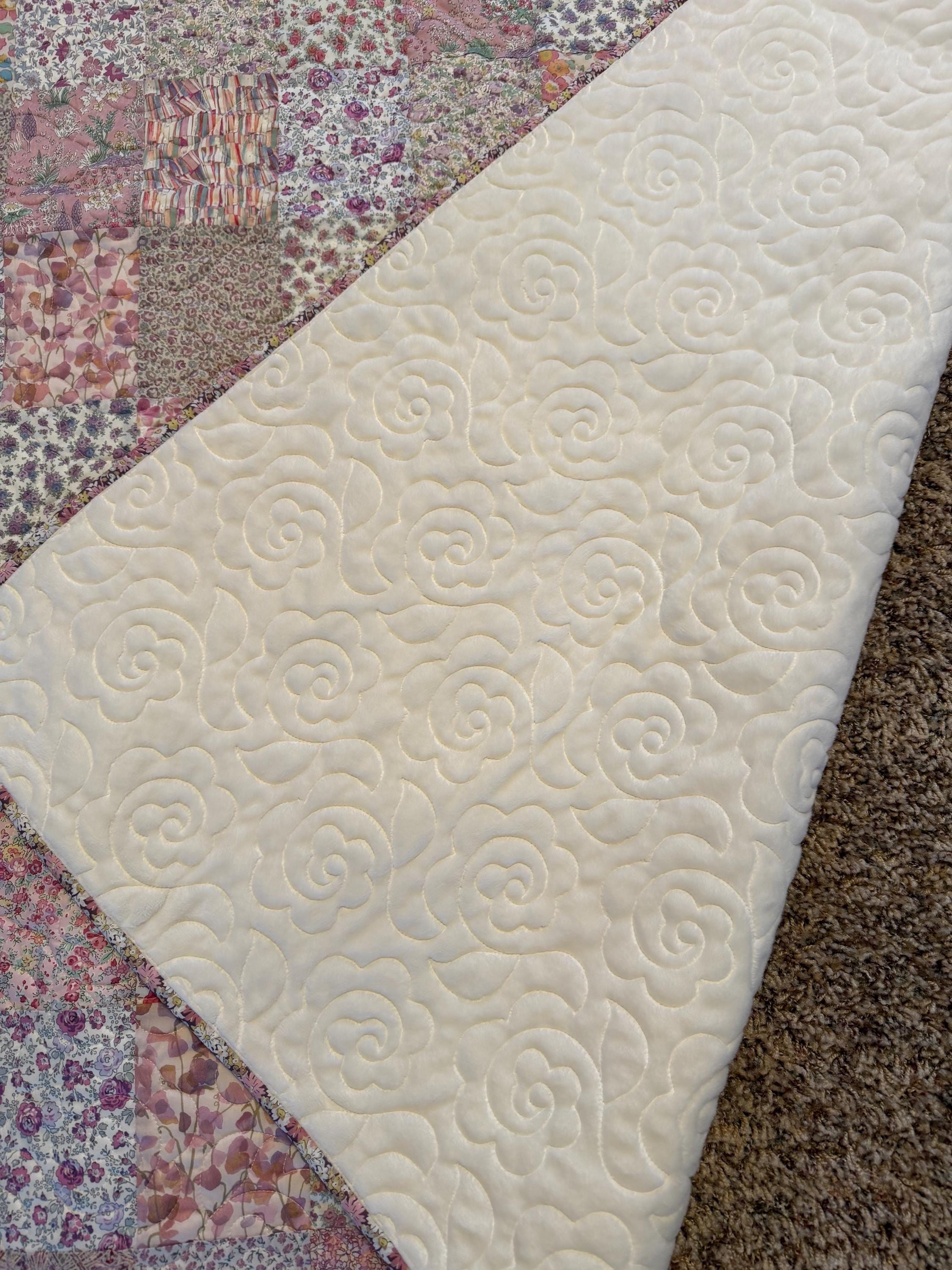 Finished quilt made from Liberty of London Tana Lawn. Finished with cream colored Minky on the back. Machine pieced machine quilted, and machine binding.