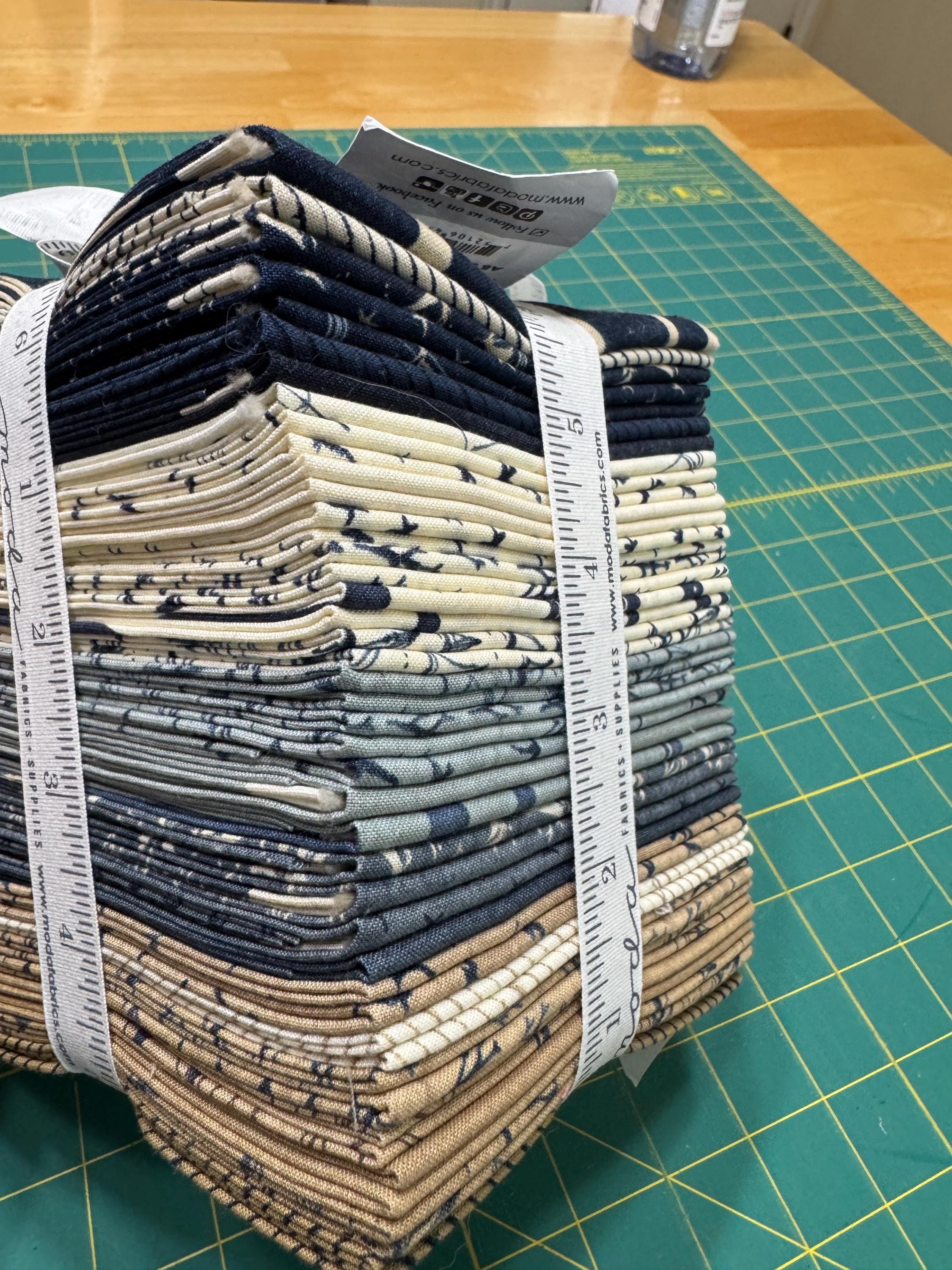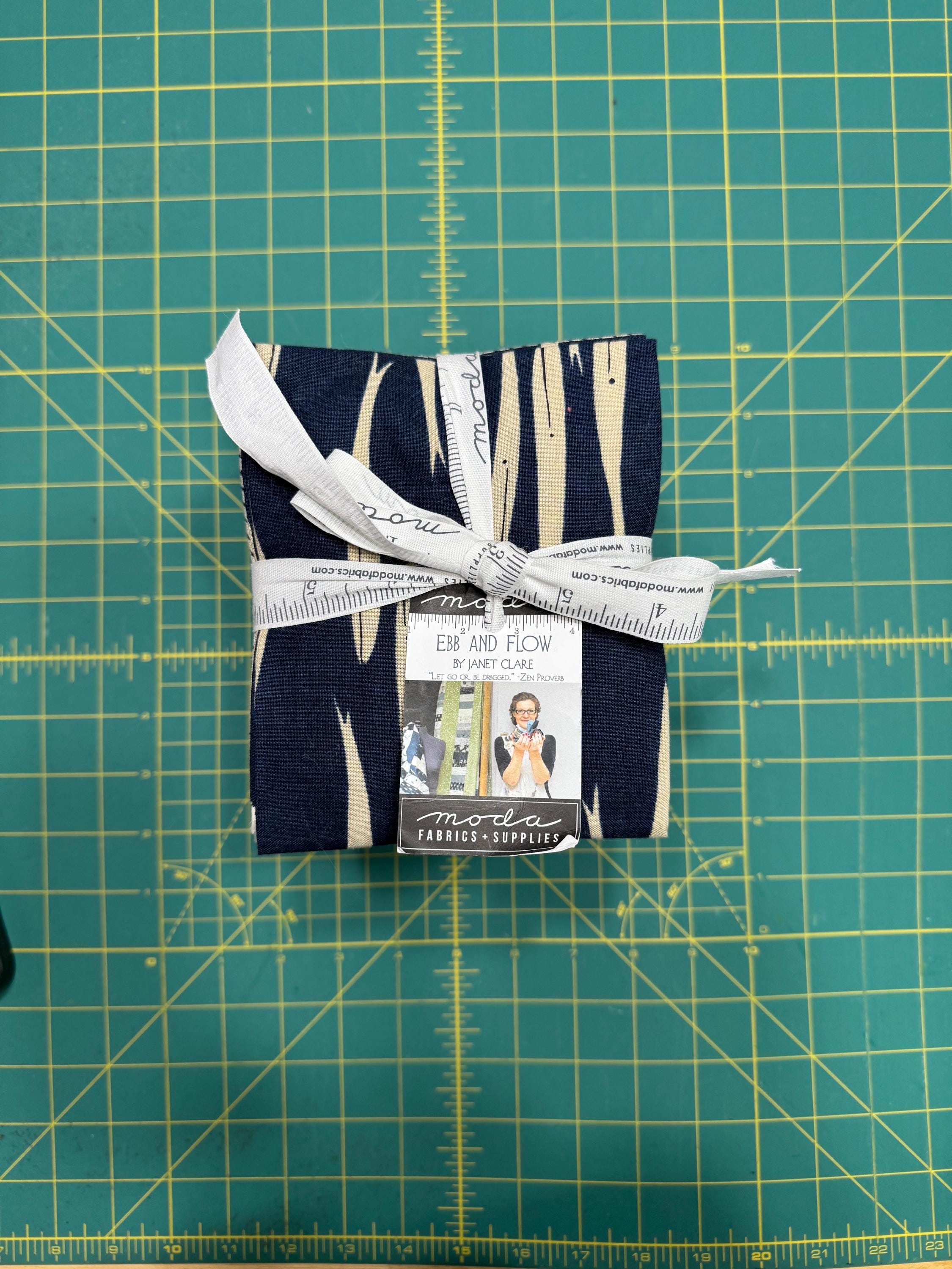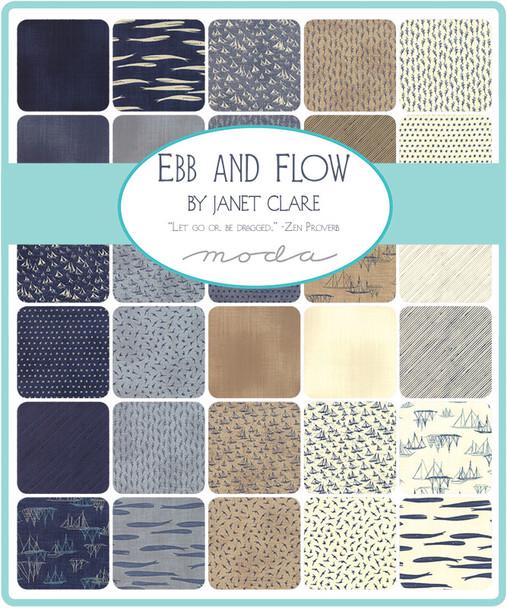 Ebb and Flow Fat Quarter Bundle by Janet Clare from Moda FabricsContains 45 pieces that are 18" x 22" in various prints of blues, ivory and beige