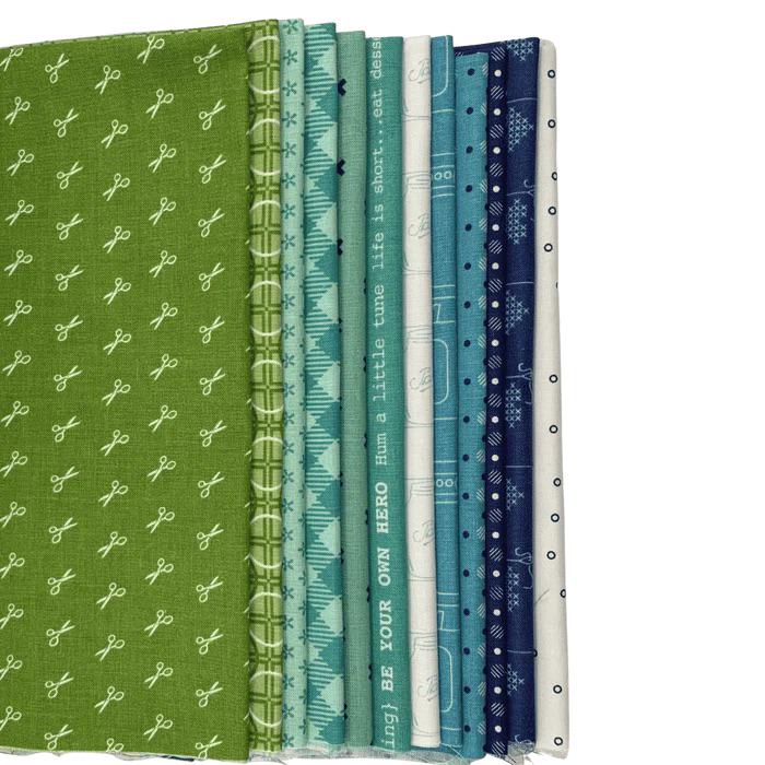 Lori Holt Cool Fat Quarter Bundle by Lori Holt from Riley Blake Designs - LHCOOL - with 12 fat quarters sized 18" x 22" in original bundle.