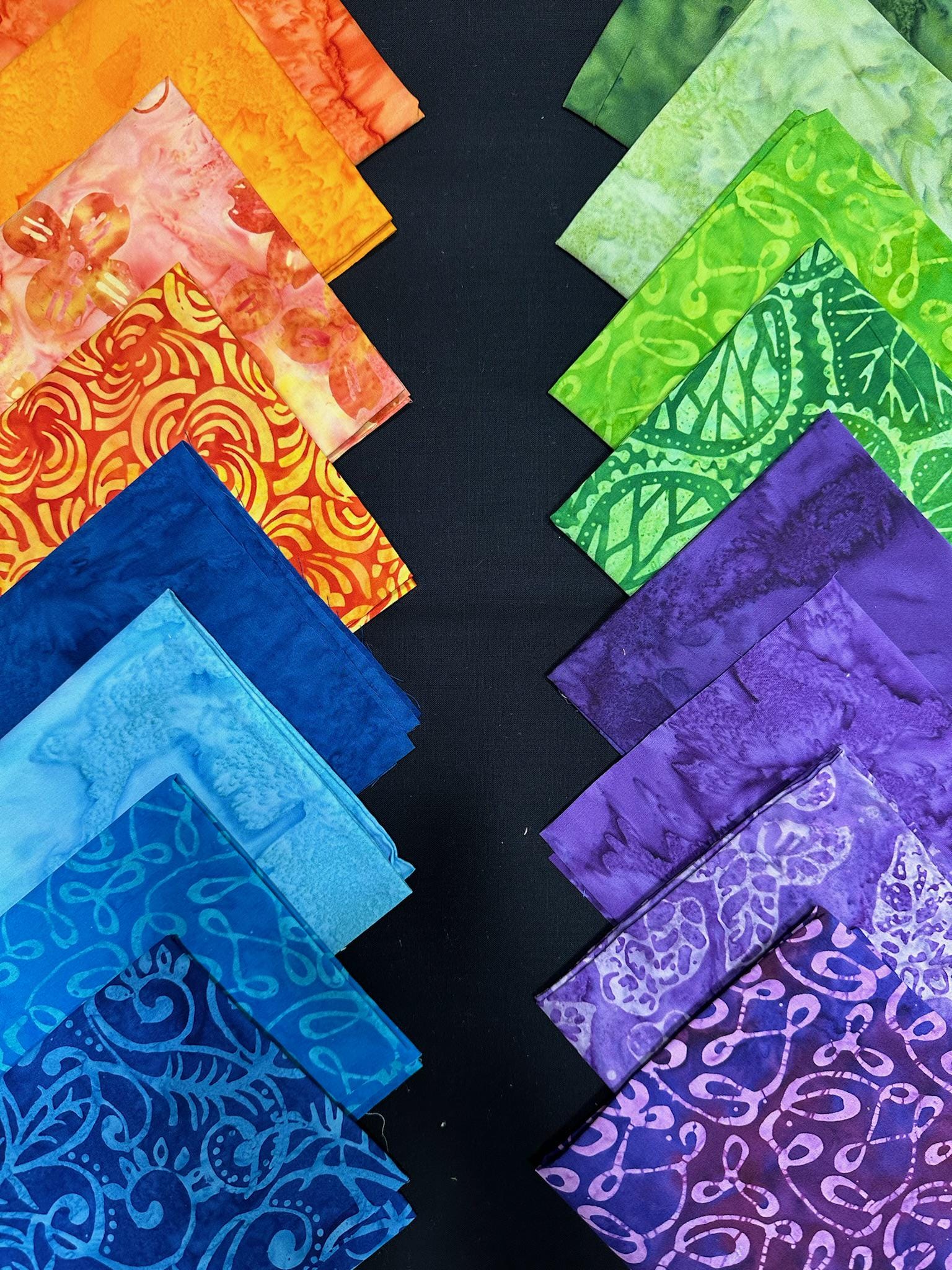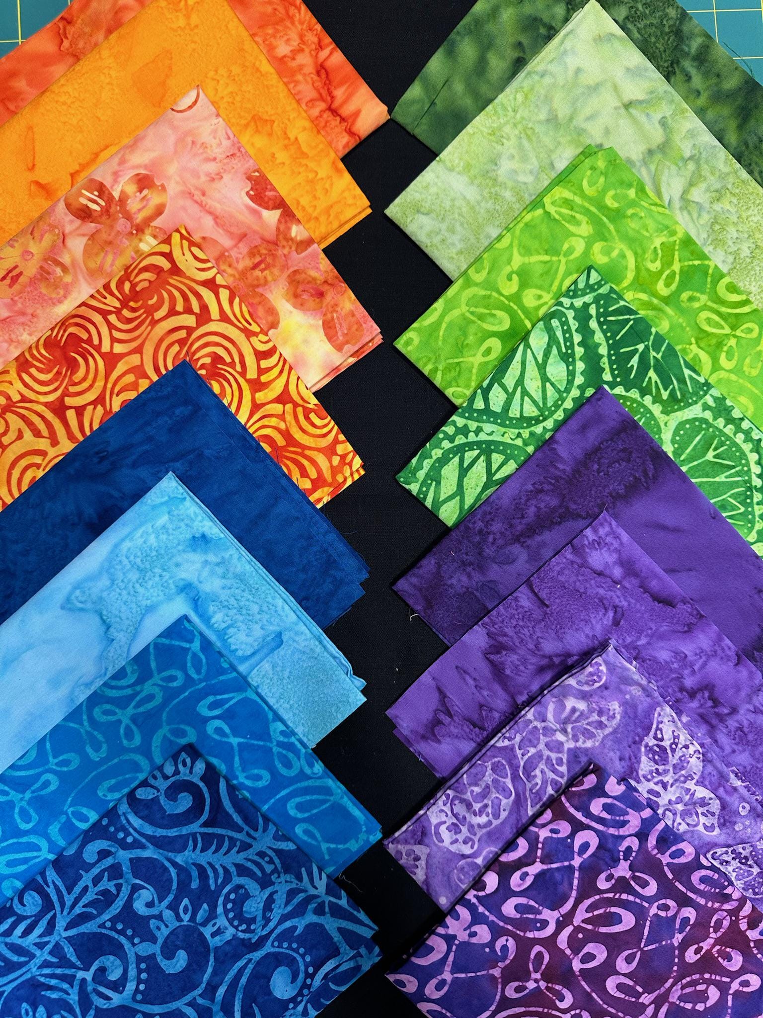 - 16 batik fat quarters for blocks