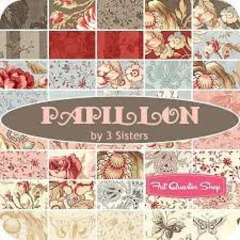 RARE FIND - Papillon Layer Cake by 3 Sisters from Moda Fabrics with 42 - 10" squares. Factory cut and still in original packaging.