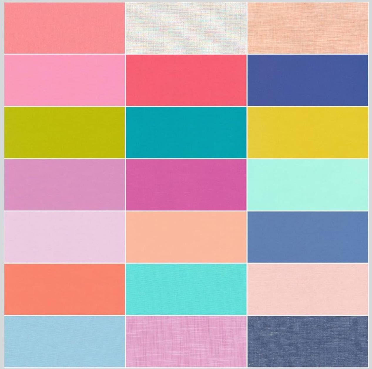Modernly Morgan Colorstory Fat Quarter Bundle by Modernly Morgan from Robert Kaufman. Factory cut bundle of various woven and cotton fabrics. Perfect for quilting many different patterns.