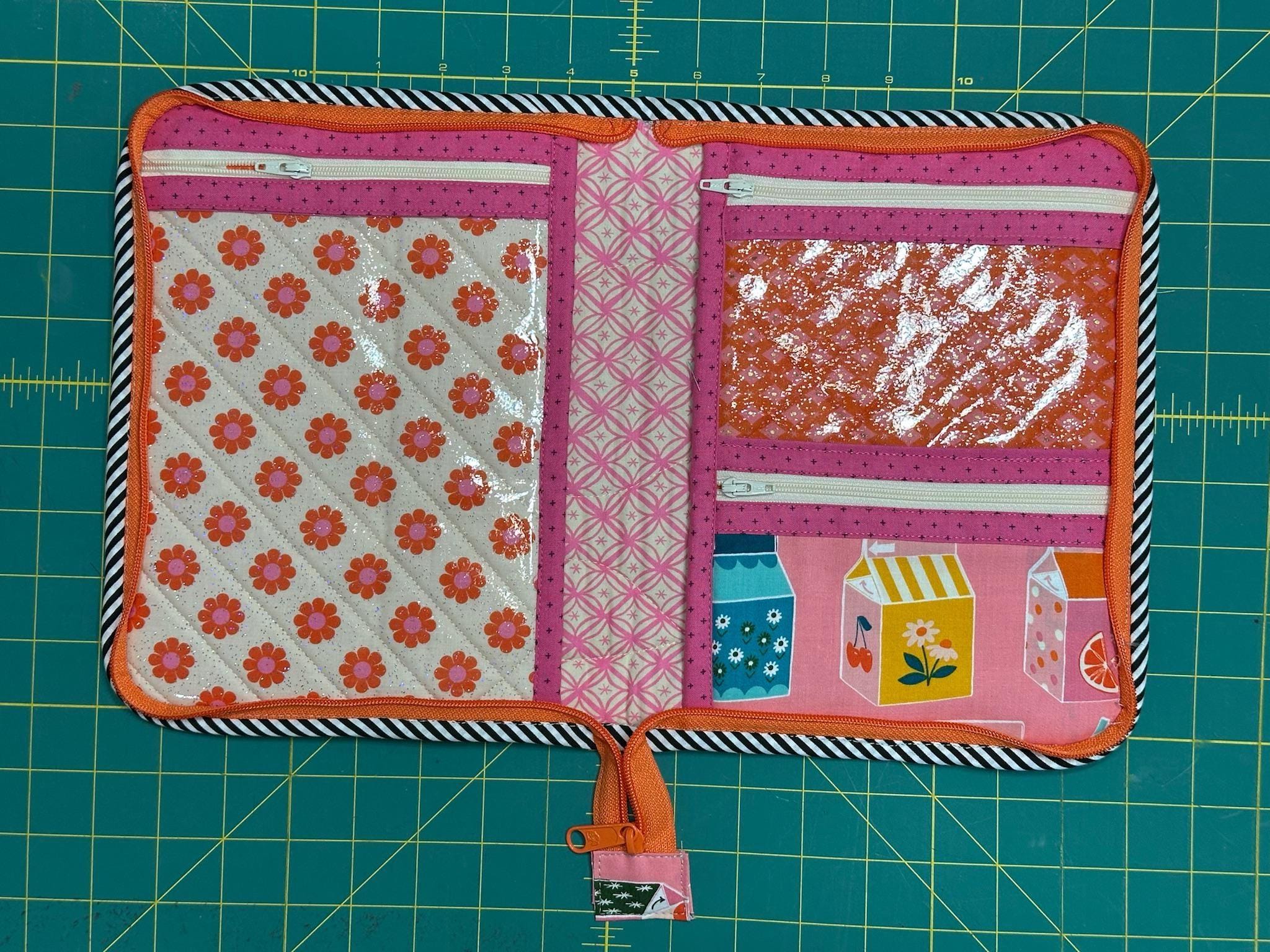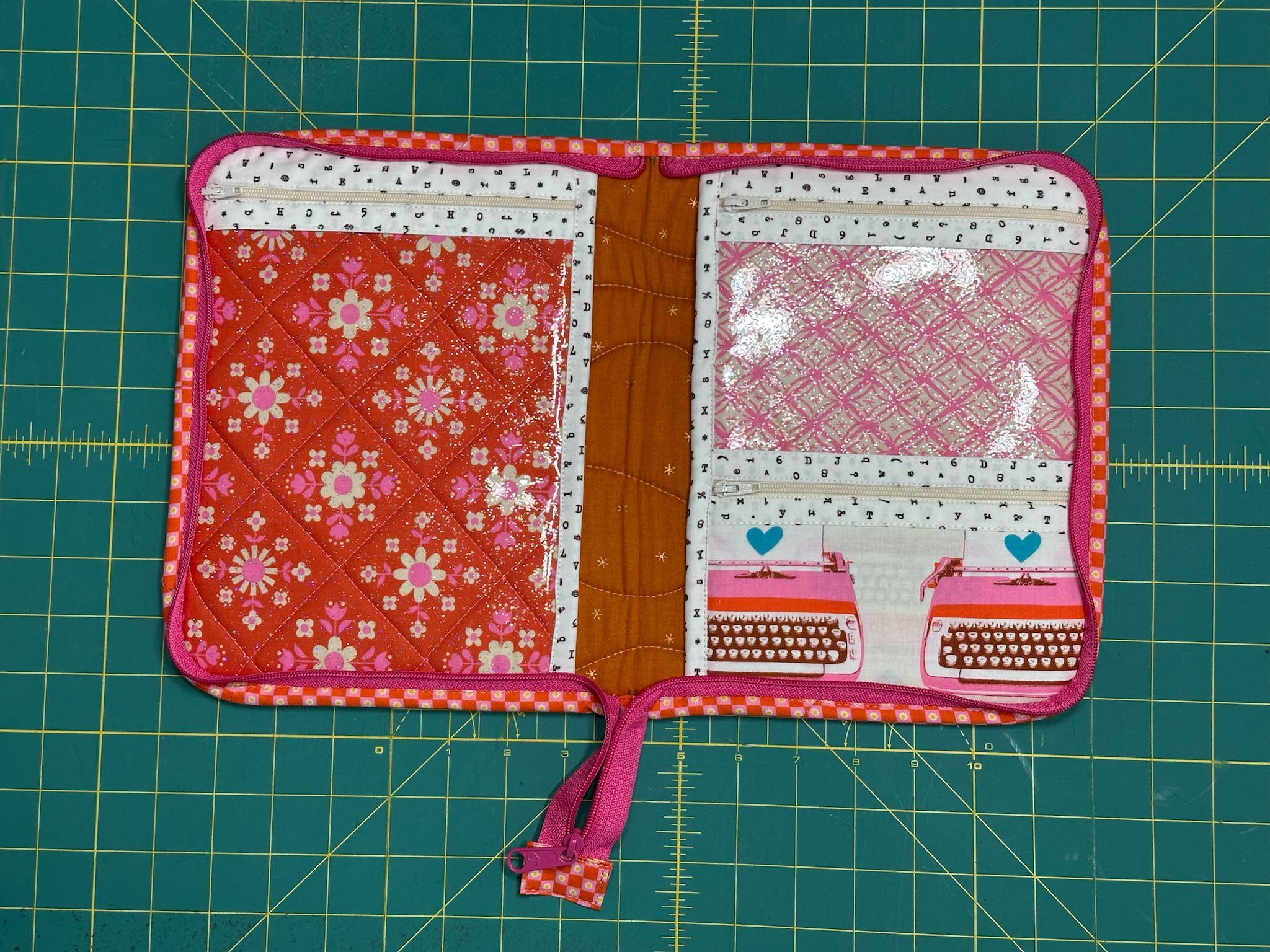 Atlas Zipper Case made using the @CenterStreetQuilts pattern. This zippered Folio case with three zippered pockets and two large open pockets holds all the necessary tools for sewing on the go. Store your current EPP project for travel sewing.