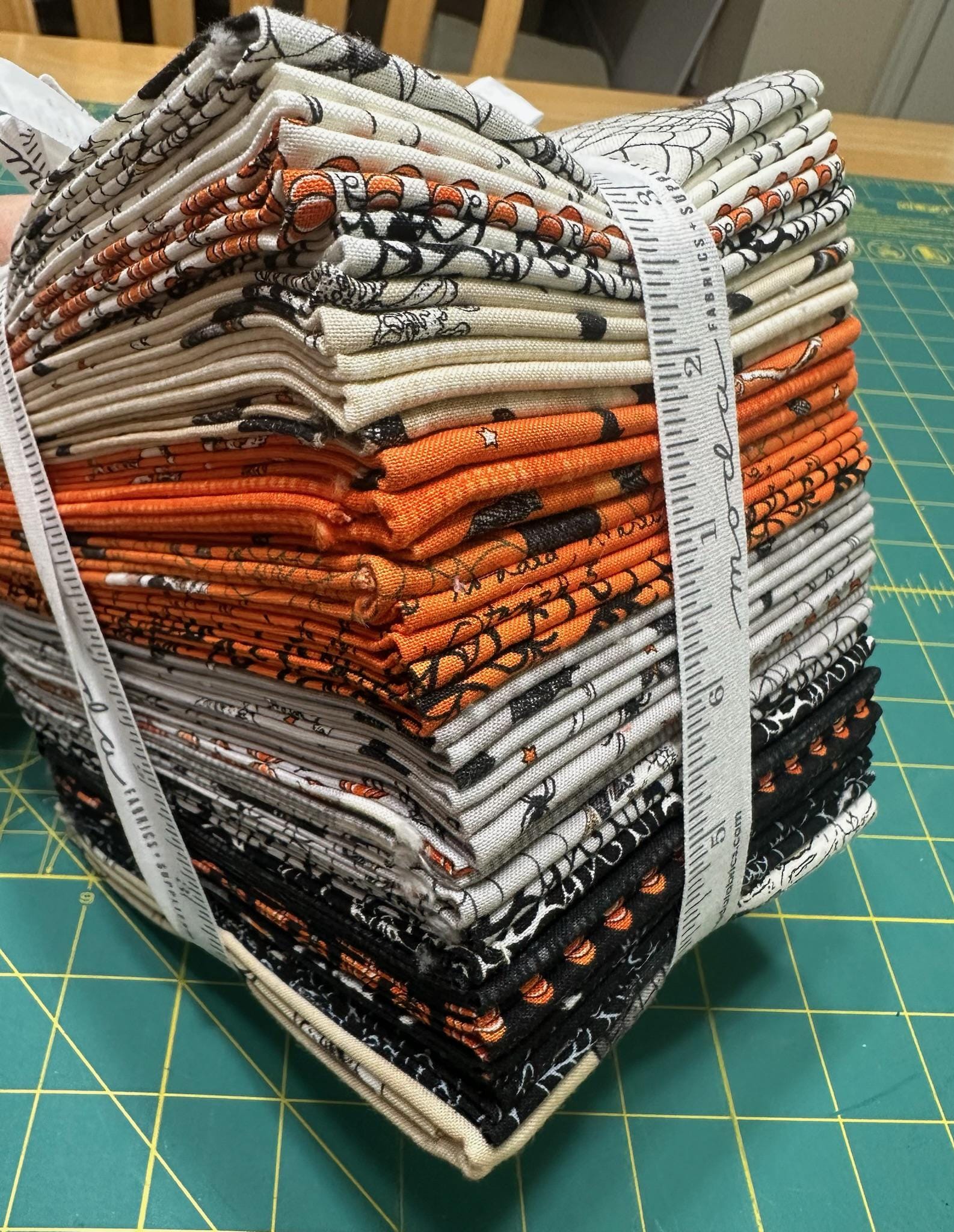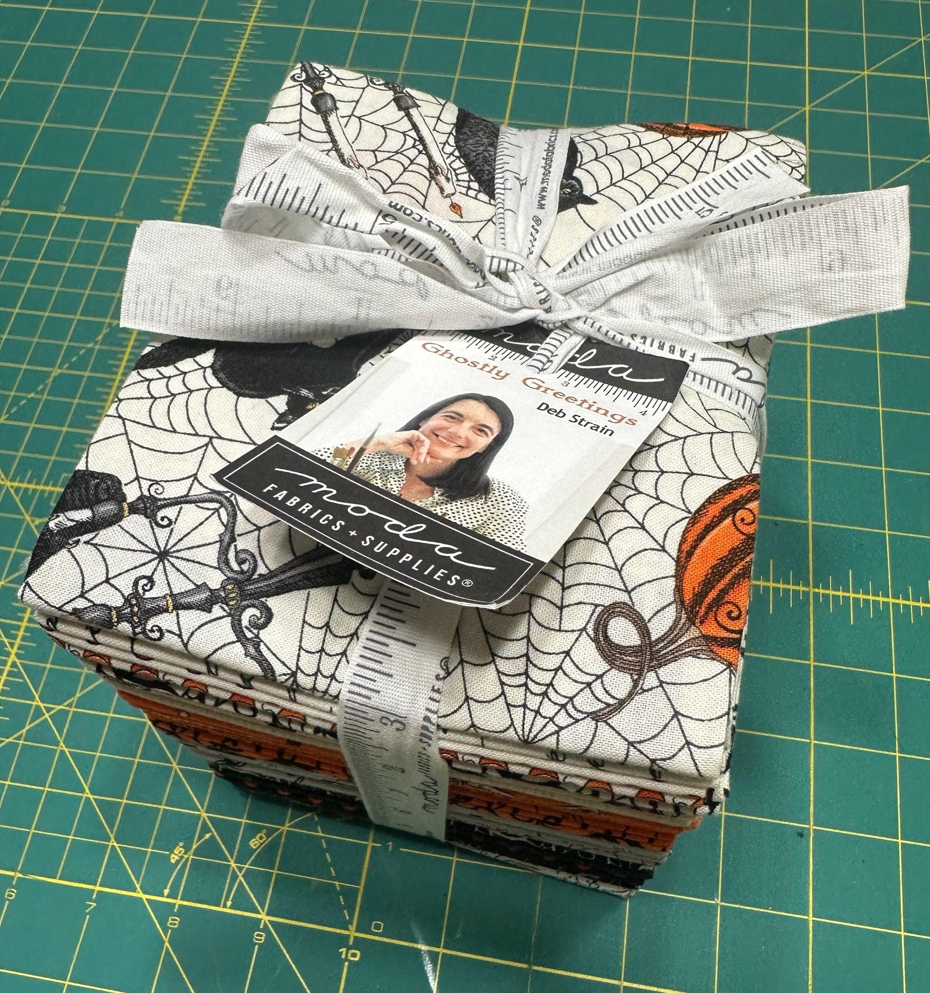 Ghostly Greetings Fat Quarter Bundle by Deb Strain from Moda Fabrics.Contains 38 pieces that are 18" x 22" in various prints in a factory cut bundle